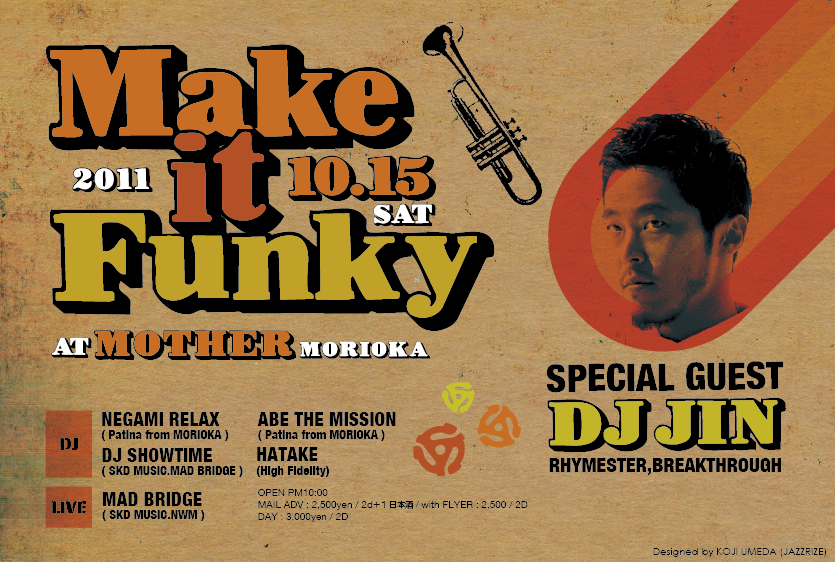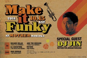 『10/15 SAT/MAKE IT FUNKY』DJ JIN 初MOTHER MORIOKA参上!!!!!