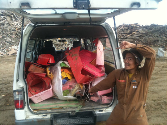 そもそもこの『SAVE TAKATA』さんとの出会いも不思議でした。そして瞬間で急接近。ましてや昔からの知人もそのプロジェクトに参加していたとは。彼等もまた前回ブログにて御紹介した『瓦RE:KEY HOLDER』http://mother-morioka.com/?p=1263 制作メンバーと同様現在メンバーさんは陸前高田の方へ住み、日々現地の皆様とコミュニュケーションを取りながら活動して居ります。その舵をとる岡本くんは長年働いた東京での仕事を辞め地元高田に戻って来ての活動です。音楽も好きな彼らはこういうアクションもつい先日起こしています。http://savetakata.org/2011/10/22/notice66/