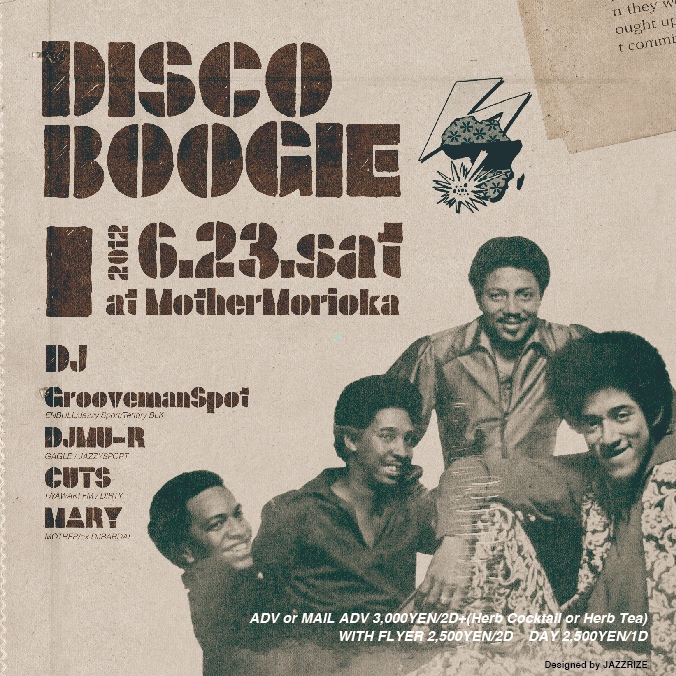 いよいよ今週末となりました。第二回『DISCO BOOGIE』AT MOTHER