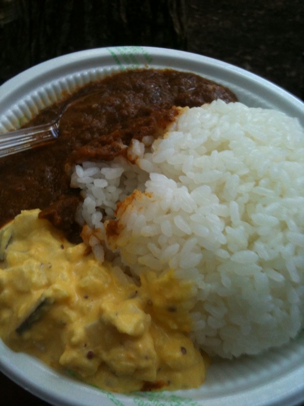 鳥の声が泣き始めた頃、歯磨きをし、ちょっと濃いめのBLACK COFFEを啜り、また小山を下りダンスフロアへ向かった。ぞろぞろと同じ時間に床からゆっくり集まりだした人達も居た。