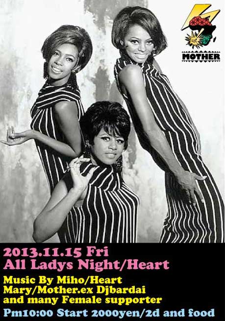 11/15金曜日はMOTHER前身、ex DJBARDAIの頃から長く盛岡で続いてるALL LADYS NIGHT/HEARTです。いつも沢山の女性サポーターに守られてます。来月は(12/20金曜日)スペシャルベリーダンスのショーケースも御準備してます。