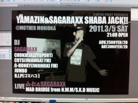 TEMPER PRINTS PRESENTS PARTY『山仁×SAGARAXX』SHABA JACK!!!!!AT MOTHER MORIOKA
