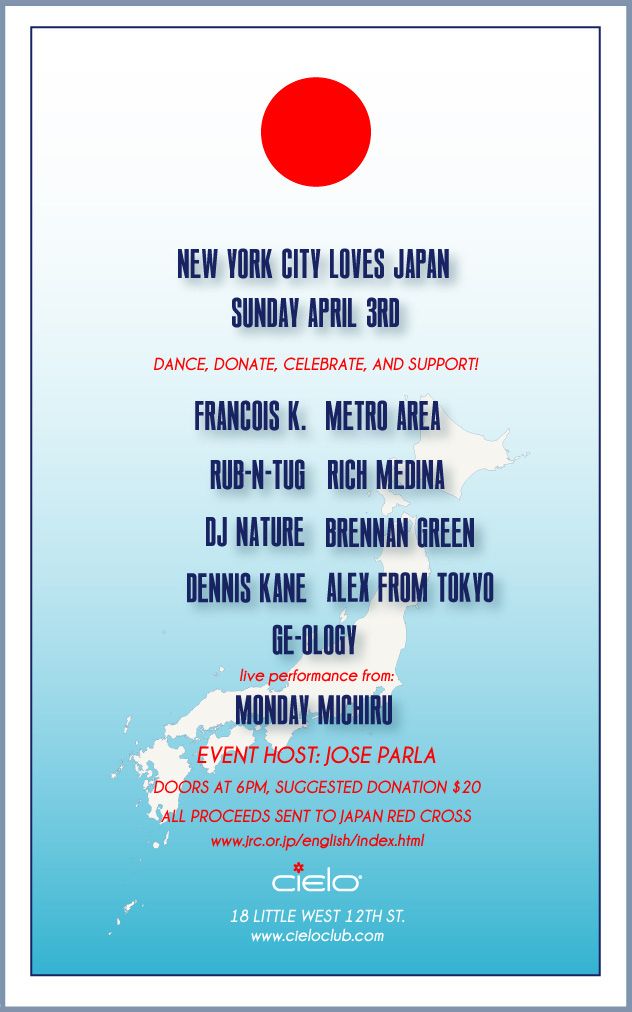 日本のために祈って、日本を助けましょう! NYCから日本の皆さんのためにお届けするライヴ録音スペシャルDJミックスです!!