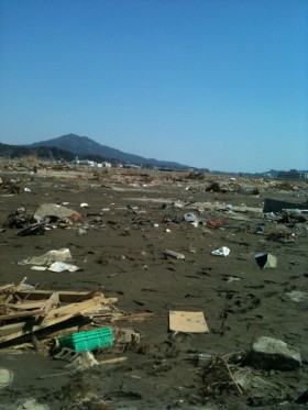 奥州からは車で約一時間半。この間に観た景色はまるであの『壊滅的』と言われるメディアからの放送が信じられない程穏やかでノンビリとなだらかな田舎道コースだった。ジミヘンを聴きながらTOKIOくんと今回の震災と原発の事について話しながら海沿いへ向かった。