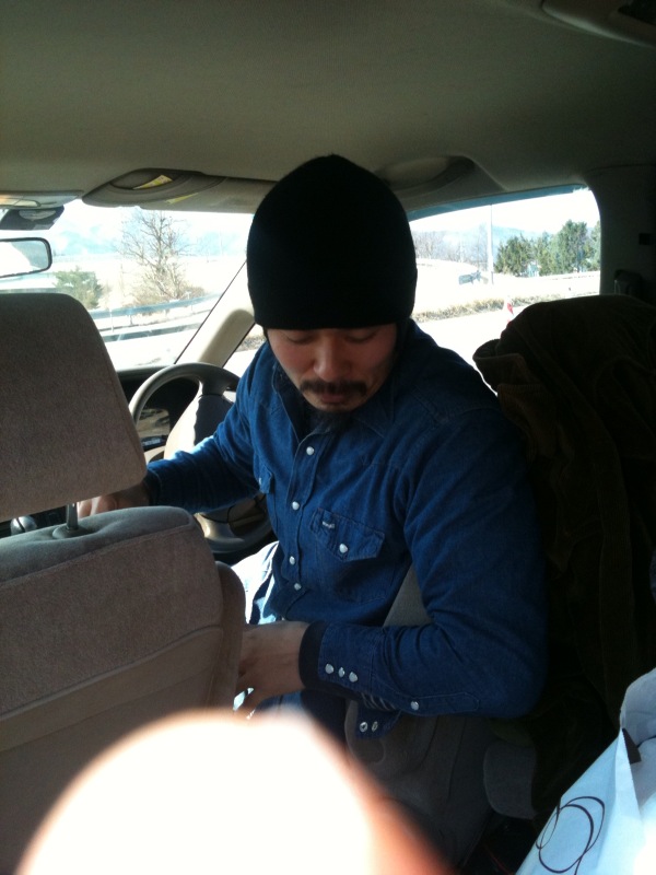 MOTHERでオープン当初から連日個展を開催してくれてる安比JAZZYSPORTでも御馴染み現秋田在住の『TOKIO ART』と盛岡インターで合流。積めこめるだけ集めた物資を一台の車に詰め込みその後奥州水沢へ。