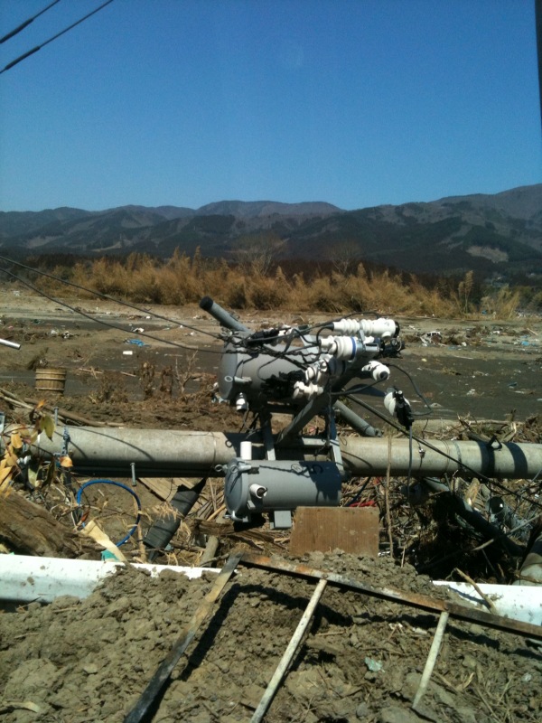 JAZZRIZEの誘導の元裏道を抜け沿岸に入ると電信柱がなぎ倒されていて、開けた道?と思い気やそこは全て津波で流された所謂メディアで言う『壊滅的』な現状だった。ここはまだ陸前高田のほんの入り口に過ぎなかった。