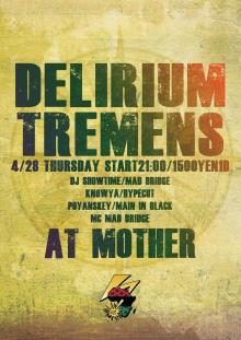 2011.4.28 THU『♫DELIRIUM TREMENS』DJ SHOW TIME/SKD MUSIC.MAD BRIDGE、KNOWTA/HYPECUT、POYANSKEY/LONG RUN.MAIN IN BLAC、MC MAD BRIDGE PM9:00〜