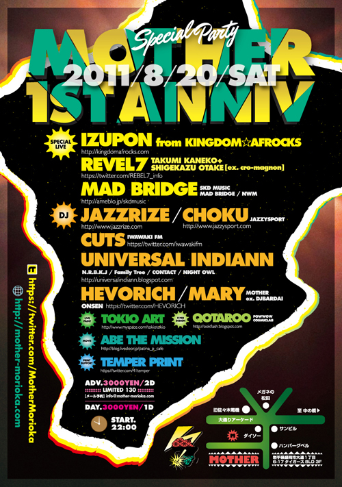 2011.8.20 SAT 『MOTHER MORIOKA 1ST ANNIVERSARY』まであと三日!